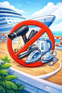 Verboten Elektronik auf kreuzfahrtschiffen wie Föhn, Wasserkocher, Bügeleisen, Mehrfachstecker
