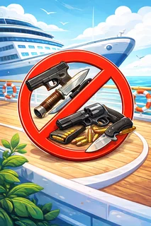Waffen soie Munition oder Explosiv mittel sind ebenfalls auf Kreuzfahrtschiffen verboten